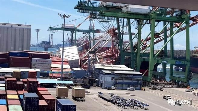 突发!一艘集装箱船撞上高雄码头,起重机倒塌,挂靠国内...